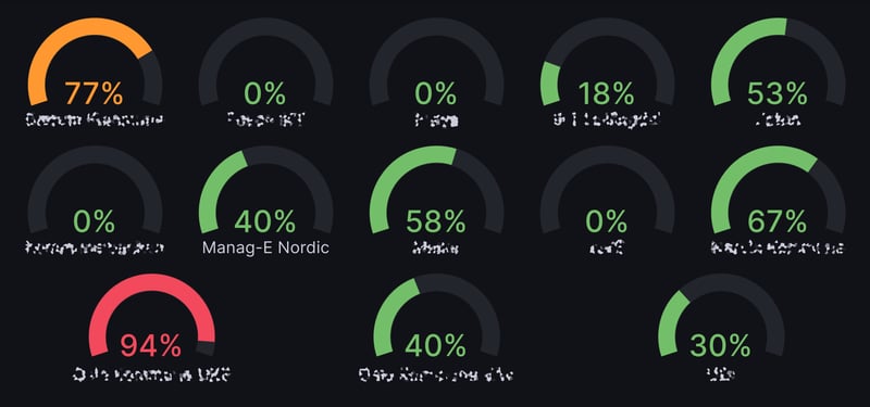 NAVNGITTE LISENSER: Manag-E monitorerer bruken av kundenes lisenser. Her er digitaliseringsselskapets oversikt over kundenes bruk av navngitte lisener, som tydelig forteller en historie om ganske lav faktisk bruk.